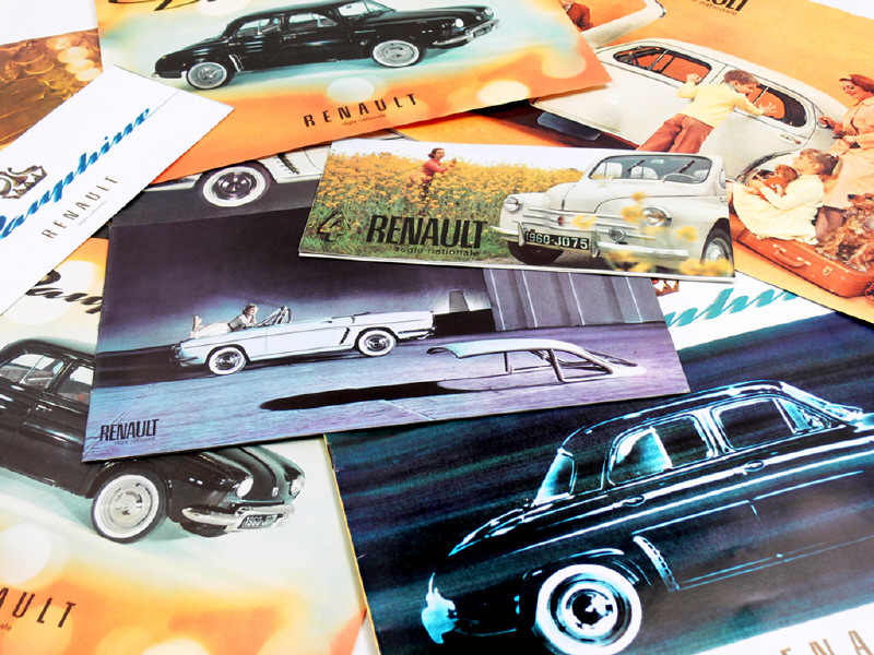 RENAULT (FRANCE) Ensemble de 3 catalogues & 2 dépliants publicitaires des années 1960