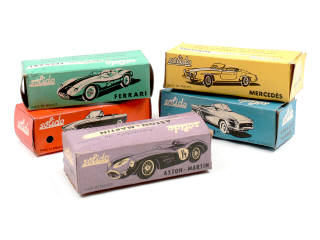 comprend les modèles suivants : ASTON MARTIN de course, FERRARI 500 TRC, MERCEDES 190 SL, RENAULT FLORIDE & SIMCA OCEANE