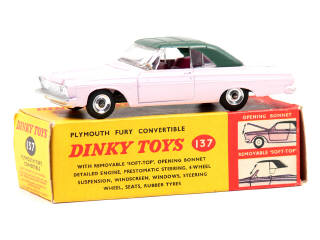 DINKY TOYS (GB) 137 PLYMOUTH FURY Convertible rose, capote verte