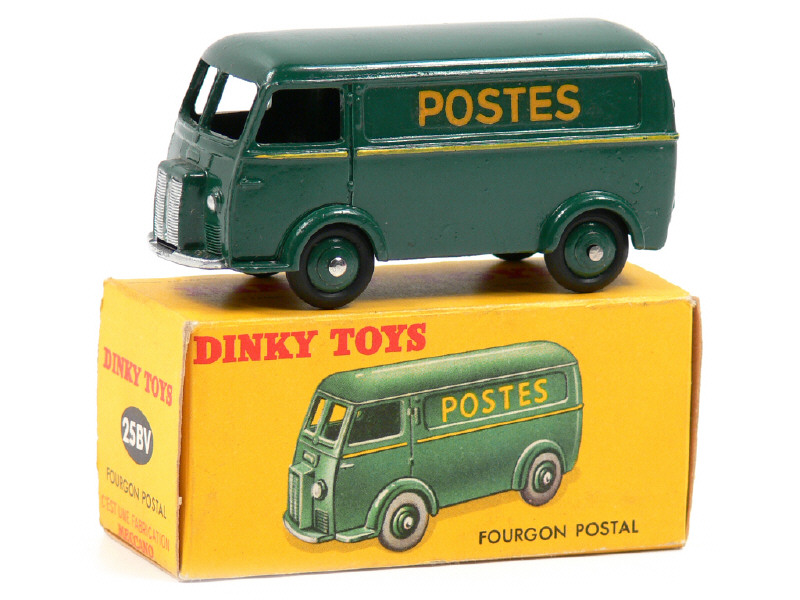 DINKY TOYS (FRANCE) 25BV PEUGEOT D3A 'POSTES' (version avec inscriptions en décalques & 1er type) vert foncé