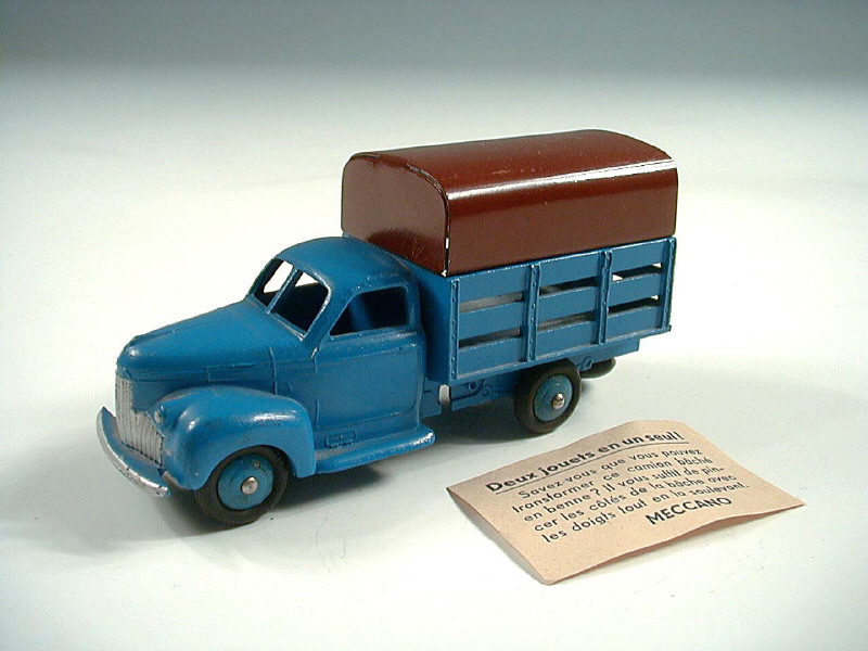 DINKY TOYS (FRANCE) 25L STUDEBAKER Tapissière (avec cabine type 2 & roues à pneus 'M') bleu, bâche marron, jantes bleues