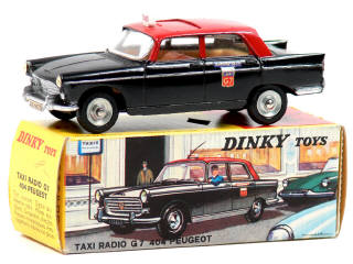 DINKY TOYS (FRANCE) 1400 PEUGEOT 404 'TAXI G7' noir, toit rouge