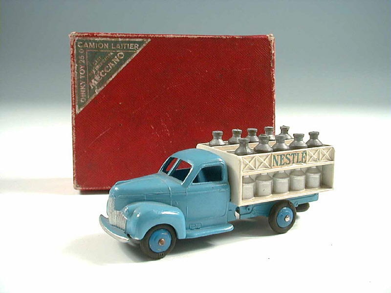 DINKY TOYS (FRANCE) 25o STUDEBAKER Laitier 'NESTLE' (avec cabine type 1 & roues à pneus 'M' première version) bleu ciel & crème