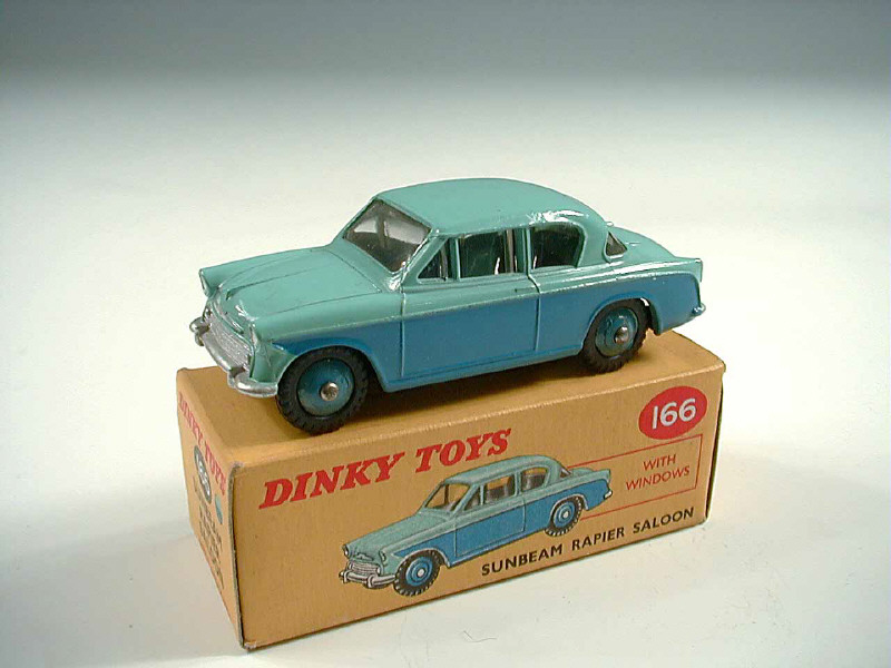 DINKY TOYS (GB) 166 SUNBEAM RAPIER Saloon bleu & turquoise, jantes bleues