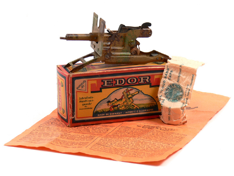 longueur 16 cm - avec trépied avant réglable & système de tir par ruban d'amorces (fonctionne) - avec notice & 3 boîtes d'armorces supplémentaires
