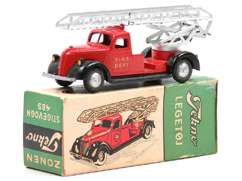 TEKNO (DANEMARK) 485 Camion grande échelle de pompiers 'FIRE DEPT' rouge, noir & gris métal