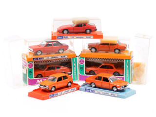 comprend : BMW 520, BMW 2800 CS, BMW 320, AUDI 100 Coupé, AUDI 80 GL, PORSCHE 924, VOLKSWAGEN GOLF - 2 boîtes en état 'c'