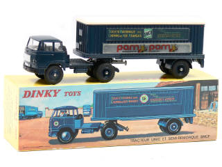 DINKY TOYS (FRANCE) 803 UNIC Semi-remorque 'S.N.C.F PAM PAM' bleu foncé, toit crème