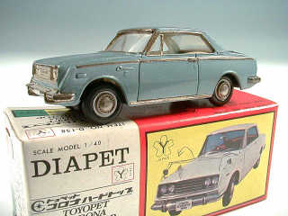 YONEZAWA TOYS DIAPET (JAPON) 138 TOYOTA CORONA Coupé de 1966 gris bleu métal, intérieur crème