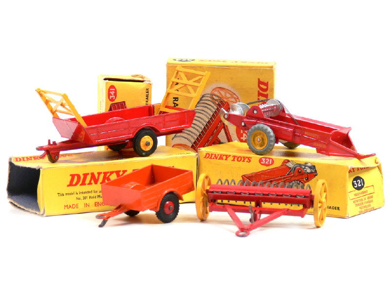 DINKY TOYS (GB) Ensemble de 3 matériels agricoles & une remorque
