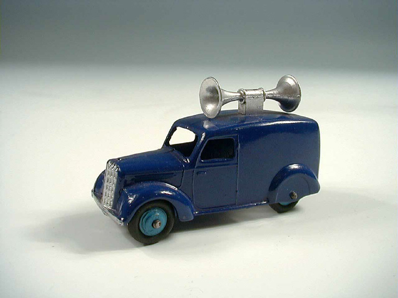 DINKY TOYS (GB) 34C Van avec haut-parleurs bleu & argent, jantes bleu vif