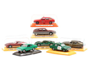 comprend : OPEL MANTA, MASERATI GHIBLI, RENAULT 12 'AGRUPACION DE TRAFICO', FORD MKII, CITROËN CX PALLAS, CHRYSLER 150 'JEFE BOMBEROS' & CITROËN SM (une suspension affaissée & vitre de hayon désolidarisée de sa base)