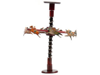 comprend un système de vis sans fin permettant par retournement de faire tourner les chevaux autour de l'axe - réalisation en bois avec vis en métal avec 9 chevaux en carton (incomplets)