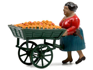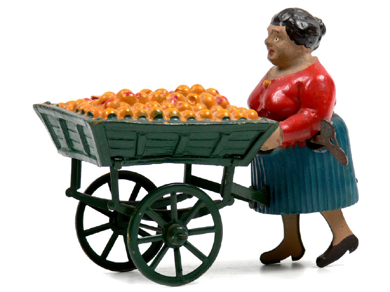 LES JOUETS CREATION (FRANCE) Madame CRAINQUEBILLE Marchande de 4 saisons avec sa charrette vert, bleu, rouge & jaune