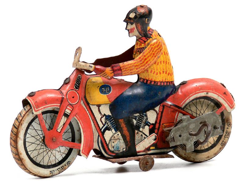 J.M.L. JOUETS MAGNIN - LYON (FRANCE) Moto avec pilote en tôle lithographiée