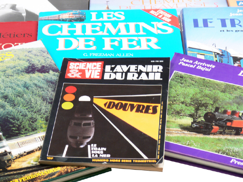comprend : 'LE TRAIN BLEU & LES GRANDS EXPRESS DE LA RIVIERA', 'LES CHEMINS DE FER', 'LES CHEMINOTS, 'AUTORAILS DE FRANCE', 'CHEMINS DE TRAVERSES', 'UN SIECLE EN TRAIN', 'LES CHEMINS DE FER DU VIVARAIS' & 'VOIES FERRES DE FRANCE' - on y joint un numéro hors série du magazine 'SCIENCE & VIE' intitulé 'L'AVENIR DU RAIL'