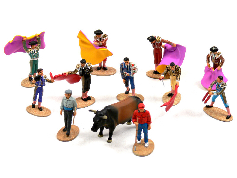 DEL PRADO (ESPAGNE) Ensemble de 11 figurines & un taureau sur le thème de la corrida
