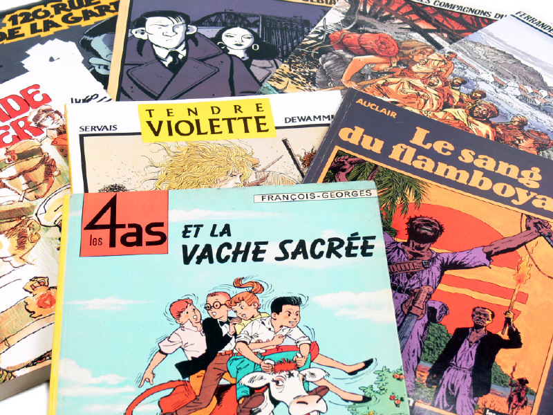 on y retrouve les auteurs : FRANCOIS-GEORGES, AUCLAIR & MIGEAT, SERVAIS & DEWAMME, HUGO PRATT, FERRANDEZ, BOURGEON, LEO MALET & TARDI & Philippe GELUCK