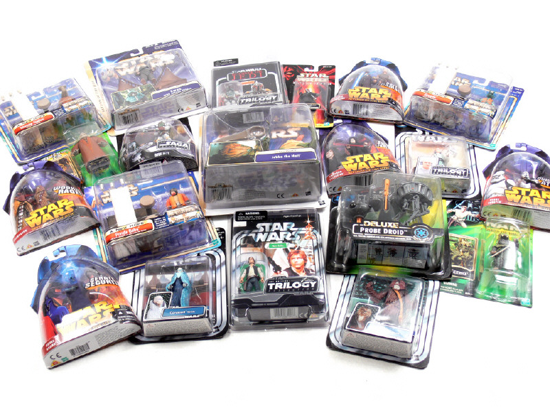 comprend notamment : MOMAW NADON, ANAKIN SKYWALKER, CLONETROOPER, CHEWBACCA, HAN SOLO, THE EMPEROR, BOBA FETT, LOBOT, YARUA, GREEDO, PROBE DROID, JABBA, ROYAL GUARD, SLY MOORE, TEEBO, PONDA BABA, BOSS NASS & DARTH MAUL - figurines sous boîtes-blister jamais ouvertes