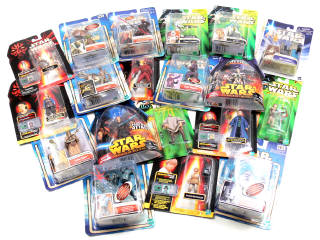 comprend : ANAKIN SKYWALKER, SENATOR PALPATINE, QUI-GON JINN, R3T7, SUPER BATTLE DROID, ZAM WESELL, CLONE TROOPER, WAT TAMBOR, TUSKEN RAIDER, LA MENACE FANTOME, R2/D2, YODA, MASSIFF, GARDE ROYALE NABOO, GASGANO, PADME NABERRIE & GENERAL GRIEVOUS- figurines sous boîtes-blister jamais ouvertes