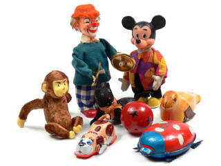 états de 'A' à 'D' - comprend un clown, une otarie, une coccinelle, un chat avec balle, un chien, un singe & un MICKEY - on y retrouve notamment les marques : JOUSTRA, KFS, YAMAKI & CARL - tous les mécanismes fonctionnent