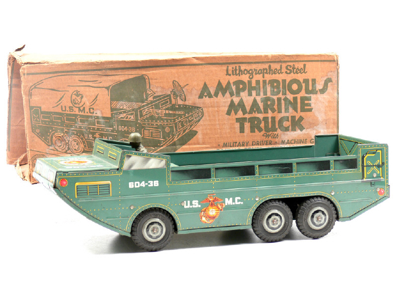 MARX TOYS (USA) 3670 Véhicule amphibie 'U.S.M.C.' en tôle lithographiée 2 tons de vert