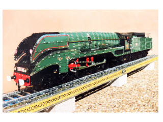 échelle 1/10e fabriqué d'après les plans achetés à la SNCF - longueur 2,50m - poids 60 kg - 4 moteurs électriques de 12 volts chacun actionnent les roues (les transformateurs, non compris dans la vente, pourront être achetés auprès du propriétaire) - modèle présenté surélevé sur rails (fournis) - l'acquéreur bénéficiera d'une livraison gracieuse dans un rayon de 500 km autour de Strasbourg (à l'exception de la Suisse, eu égard aux frais douaniers) - l'estimation de ce modèle unique a été limitée à la valeur "vrac" des pièces détachées MECCANO - pièce exceptionnelle ayant fait l'objet de plusieurs expositions (voir détails et histoire en encadré)