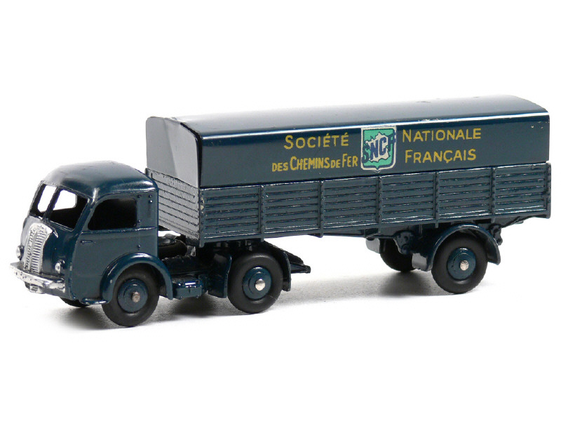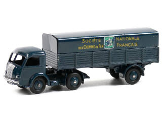 DINKY TOYS (FRANCE) 32AB PANHARD Semi-remorque 'S.N.C.F' (version avec intérieur de toit quadrillé) bleu foncé (fond de l'écusson uni)