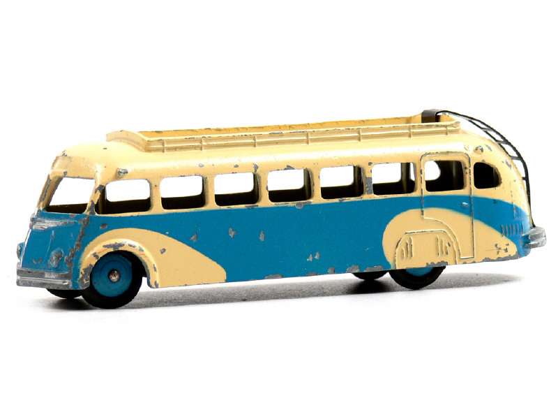 DINKY TOYS (FRANCE) 29E Autocar ISOBLOC (version avec galerie lisse & ailes au pochoir) bleu & crème