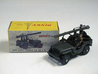 DINKY TOYS (FRANCE) 829 JEEP WILLYS Porte-canon kaki