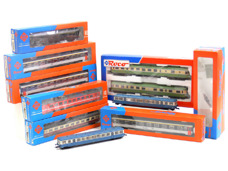 ROCO 'HO' (AUTRICHE) Ensemble de 6 voitures de voyageurs & 2 autorails