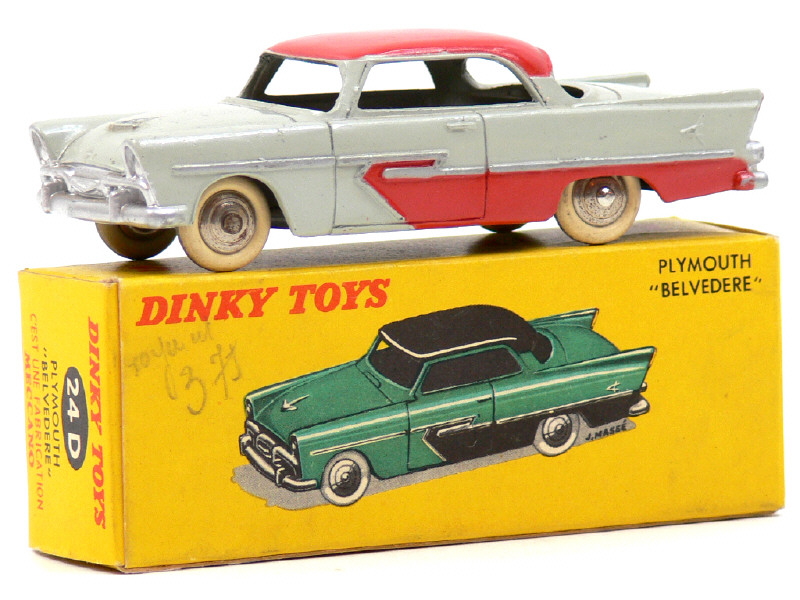 DINKY TOYS (FRANCE) 24D PLYMOUTH BELVEDERE (version avec jantes convexes) gris & tomate