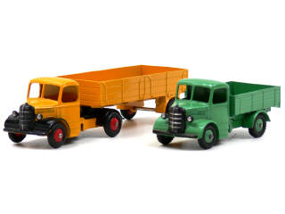 DINKY TOYS (GB) 521 BEDFORD Semi-remorque plateau à ridelles jaune d'or, ailes noires & jantes rouges