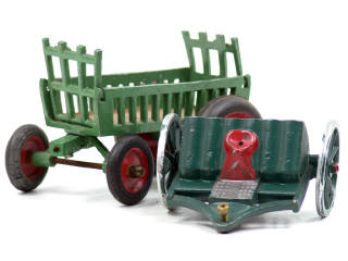 version roues à pneus - manque attelage - une ridelle déformée (avec une petite fêlure) - une petite retouche - axes de roues oxydés
