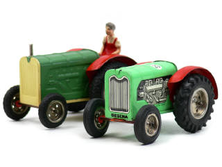 GESCHA (ALLEMAGNE) Tracteur agricole en tôle lithographiée vert pomme & rouge