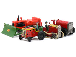 TRI-ANG-MINIC (GB) Tracteur agricole sur chenilles en tôle peinte rouge
