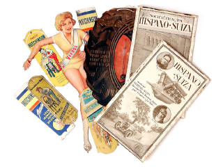 états de 'C' à 'E' - comprend 5 plaques métalliques publicitaires HUTCHINSON, une pin-up VEEDOL, un thermomètre RENOV-PNEUS & 2 plaques HISPANO SUIZA - diverses traces d'oxydation