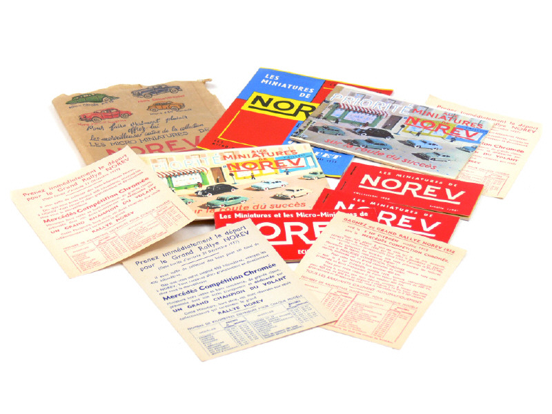 comprend les années : 1955 (2 exemplaires), 1956 (2 exemplaires), 1957 & 1958 - on y joint 4 bulletins d'inscription au 'GRAND RALLYE NOREV' & un sachet d'emballage en papier de la marque (en état 'c')