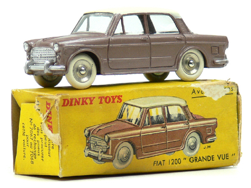 DINKY TOYS (FRANCE) 531 FIAT 1200 GRANDE VUE (version avec jantes concaves) havane métal, toit crème
