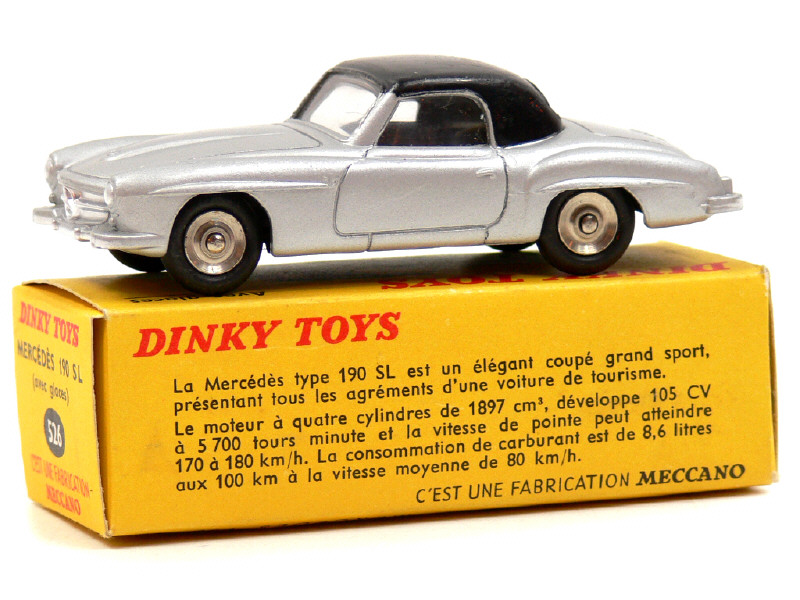 DINKY TOYS (FRANCE) 526 MERCEDES 190 SL (version avec vitres & jantes concaves) gris métal, toit noir