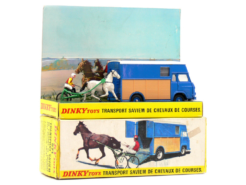 DINKY TOYS (FRANCE) 571 SAVIEM Goélette transport de chevaux bleu, bois, toit blanc