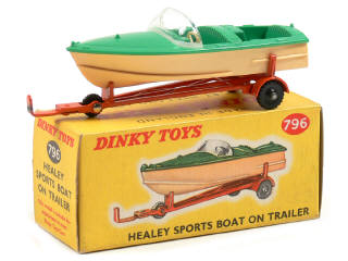 DINKY TOYS (GB) 796 HEALEY SPORTS BOAT avec remorque orange, crème & vert