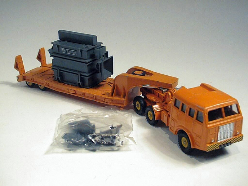 DINKY TOYS (FRANCE) 898 BERLIET Semi-remorque plateau porte-transformateur (version avec jantes de remorque convexes) orange