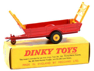 DINKY TOYS (GB) 320 Remorque à foin rouge & jaune, jantes plastique jaune