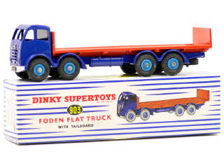 DINKY TOYS (GB) 903 FODEN Plateau à dosseret bleu outremer & orange, jantes bleu vif