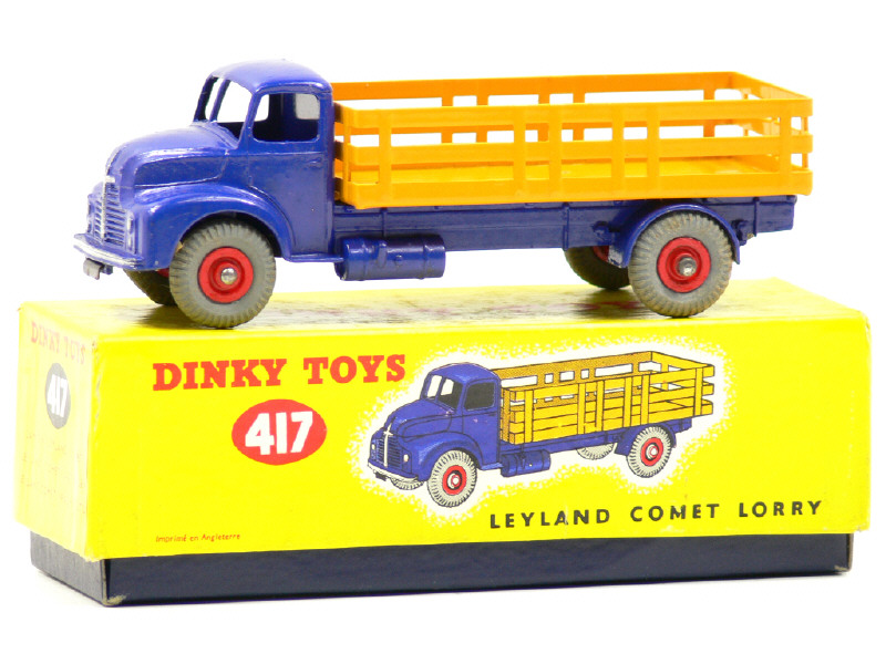 DINKY TOYS (GB) 417 LEYLAND COMET Plateau à ridelles ajourées bleu marine & jaune d'or