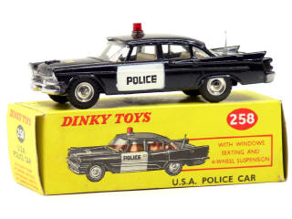 DINKY TOYS (GB) 258 DODGE ROYAL Sedan 'USA POLICE CAR' noir & blanc