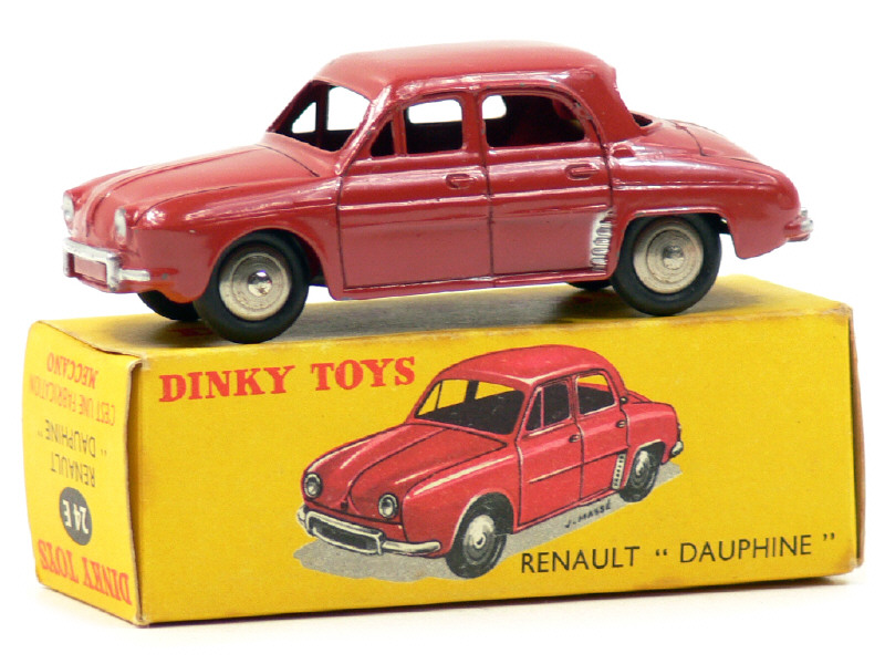 DINKY TOYS (FRANCE) 24E RENAULT DAUPHINE (version sans vitres & avec jantes convexes) brique