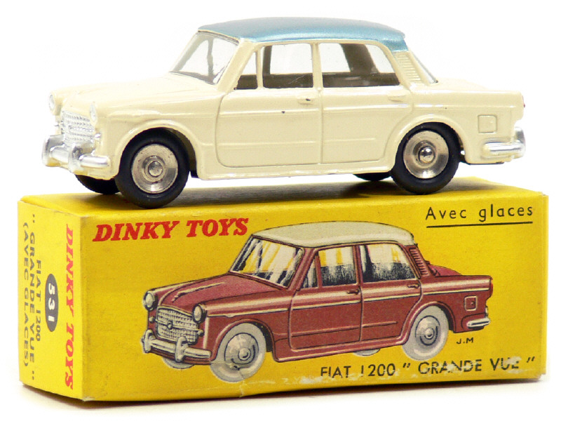 DINKY TOYS (FRANCE) 531 FIAT 1200 GRANDE VUE (version avec jantes concaves) crème, toit bleu métal