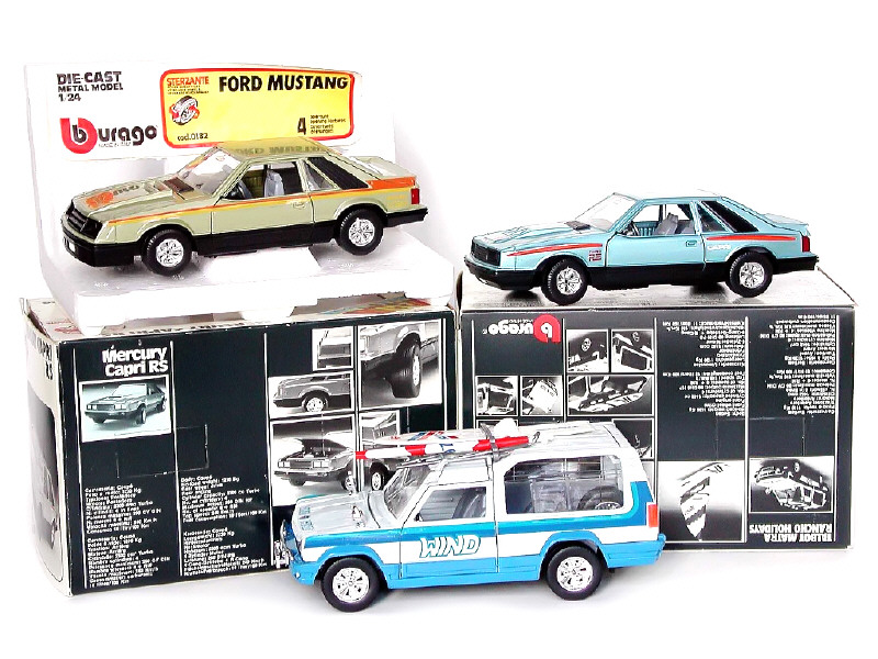 échelle 1/24ème - miniatures reproduisant les modèles : MERCURY CAPRI RS, FORD MUSTANG & TALBOT MATRA RANCHO 'WIND'
